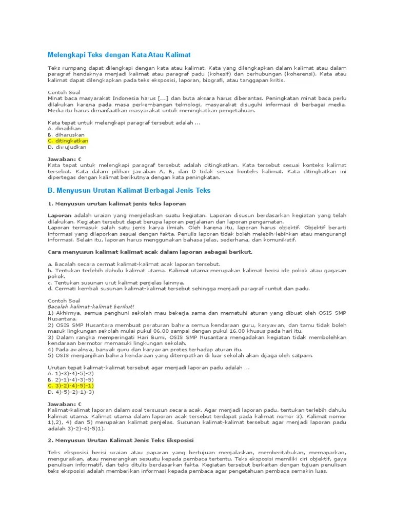 Contoh soal menyusun kalimat acak bahasa indonesia. Demikianlah yang dapat admin bagikan tentang contoh soal menyusun urutan kalimat jenis teks eksposisi laporan ulasan dan biografi dalam ujian nasional bahasa . Untuk teks naratif, siswa harus berpegangan dengan generic structure . Soal bahasa indonesia kelas 3 membuat pertanyaan,menyusun kalimat acak,menyalin ejaan kalimat dan kata depan. Kumpulan soal mengurutkan kalimat acak menjadi paragraf yang padu dalam bentuk pilihan ganda disertai dengan kunci jawabannya.